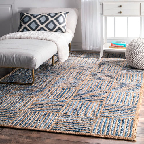 Braided Natural Jute & Denim Collection Classic Hand Woven Area carpet