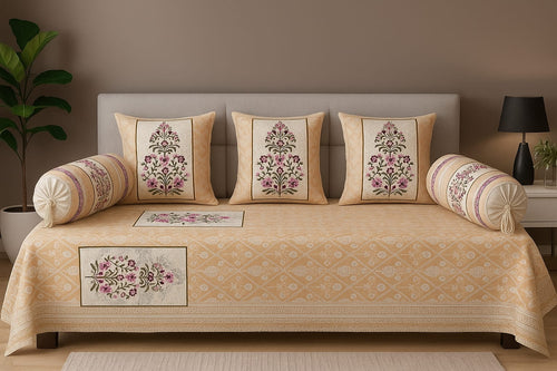 Printed Floral Cotton Design - 6 Pieces Diwan Set