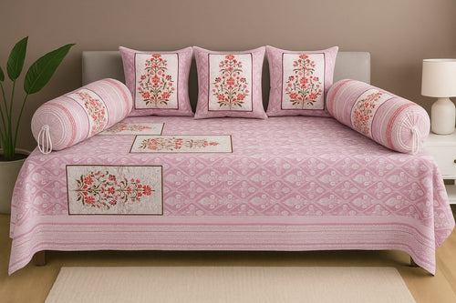 Pink Quilted Designer cotton Diwan set- 8 Pieces Set