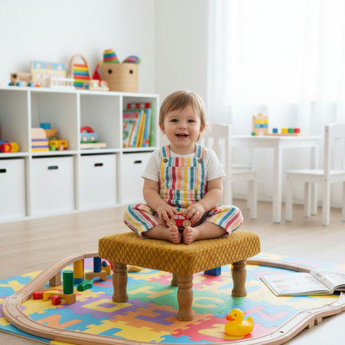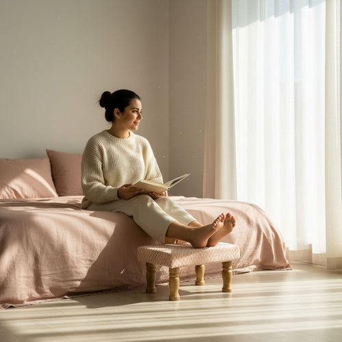 Small Chowki/Stool Square Utility Padded Natural Finish - Oliva (4-Leg)