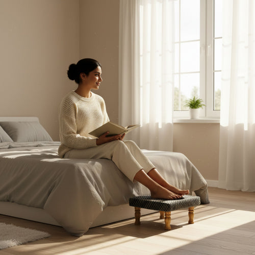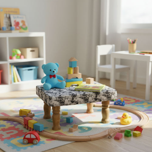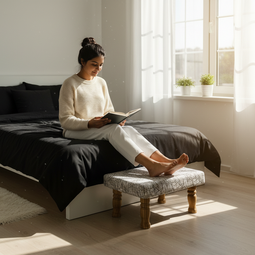 Small Chowki/Stool Square Utility Padded Natural Finish - Black Texture (4-Leg)