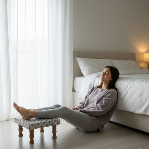 Bohemian Home Round Utility Padded Stool/ Ottoman Natural Finish - 4 Leg, Gray