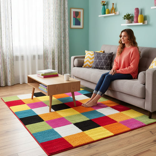 Rainbow Color Multi Box Collection Modern Shag Rug