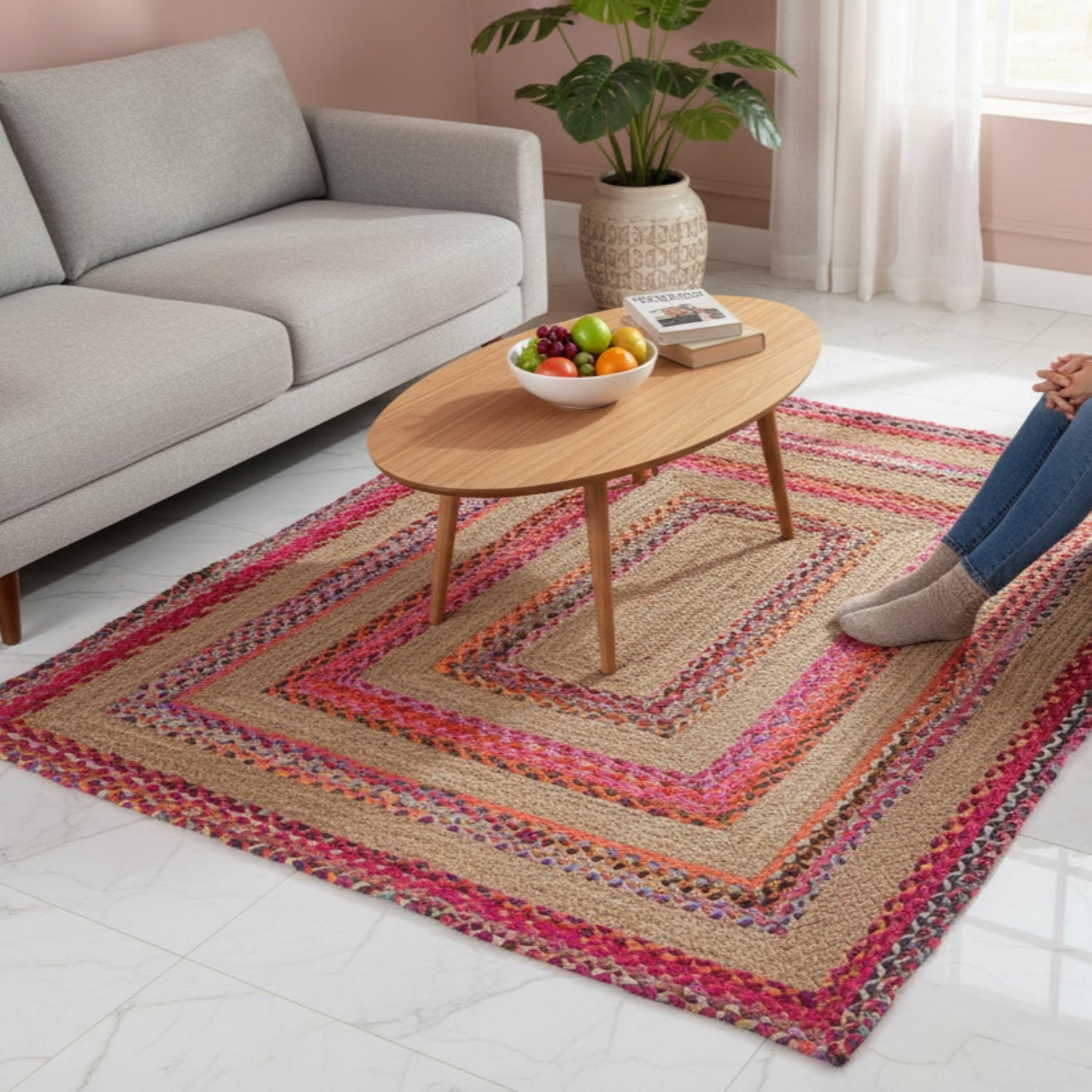 Braided Natural Jute & Multi Cotton Collection Classic Hand Woven Area carpet
