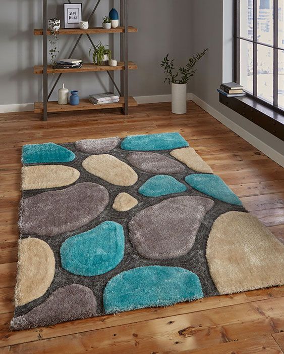 Aqua With Grey 3D Designs Shag Rug/mat/Carpet